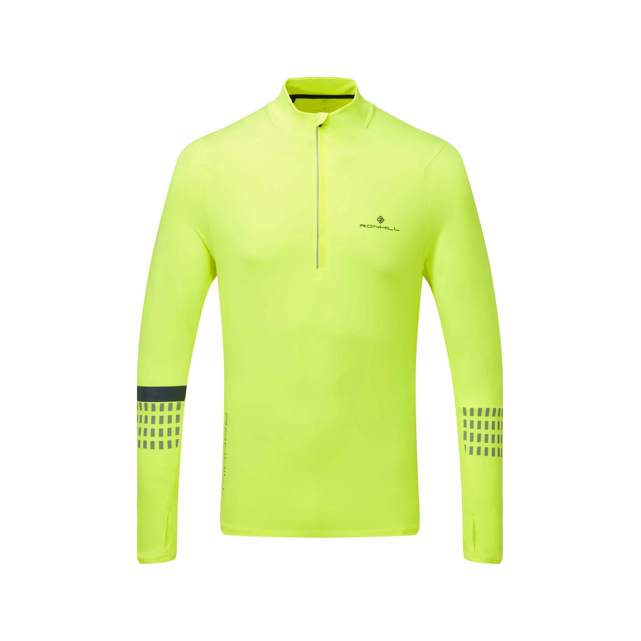The Ronhill Men’s Tech Afterhours 1/2 Zip Running Tee in the Fluo Yellow/Charcoal Reflect colourway is built for low light conditions. Extensive reflective detailing has been included all the way round this long sleeve tee for excellent visibility. This means you can stay safe near busy roads.